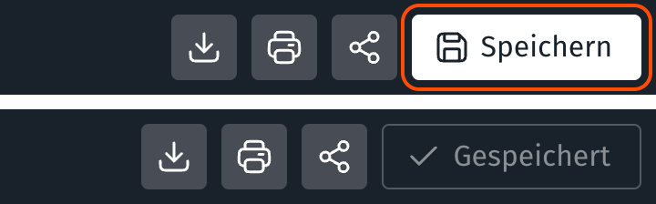Sie können eine Analyse speichern und zu einem späteren Zeitpunkt zu ihr zurückkehren. Klicken Sie dazu innerhalb einer Analyse oben rechts auf den Speichern-Button, der anschließend zu einem »Gespeichert«-Indikator wird.