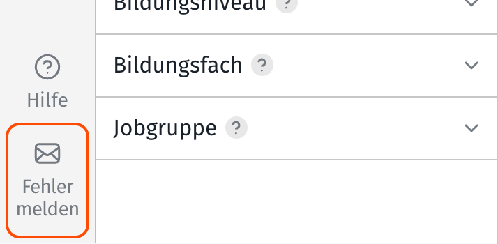 Falls Ihnen bei der Nutzung des Dashboards Fehler auffallen, finden Sie in der linken unteren Ecke der Hauptansicht einen Button, mit dem Sie uns Fehler per E-Mail melden können: